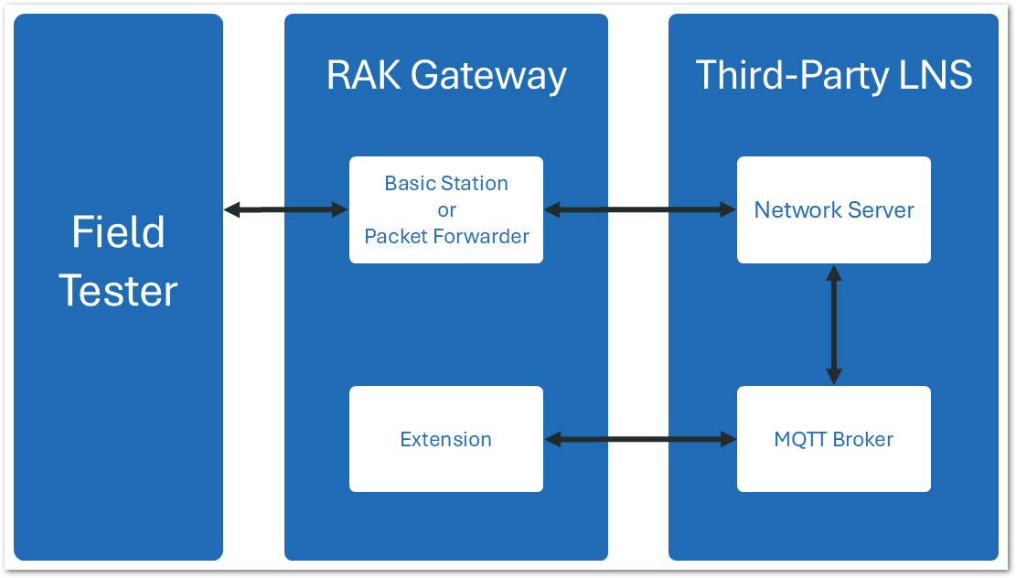 - Uplinks from the Field Tester are forwarded to the built-in LNS on the RAK Gateway.